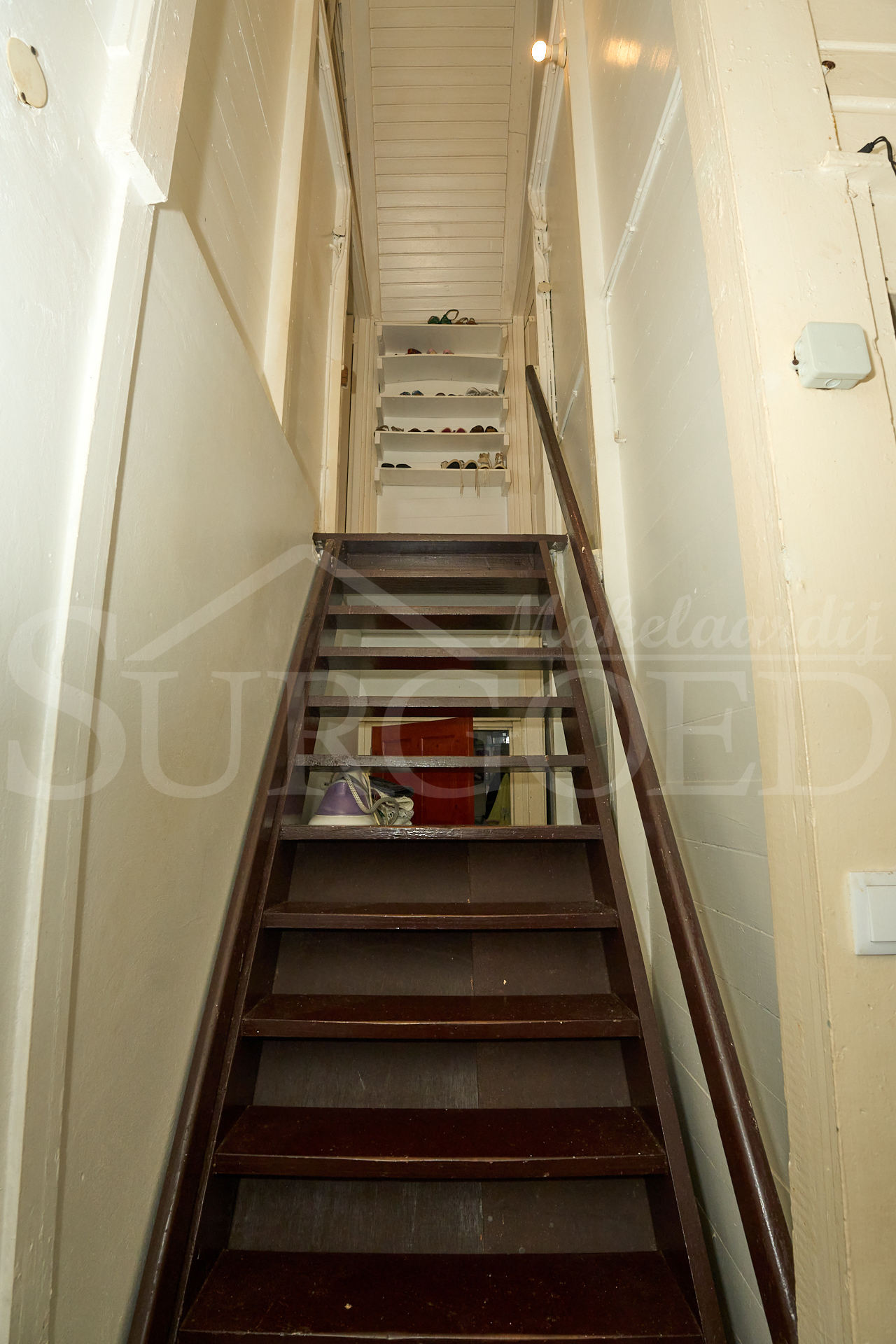 Boven zijn twee slaapkamers bereikbaar via een solide trap, praktisch van opzet, eenvoudig te moderniseren en volledig naar eigen smaak in te richten.
